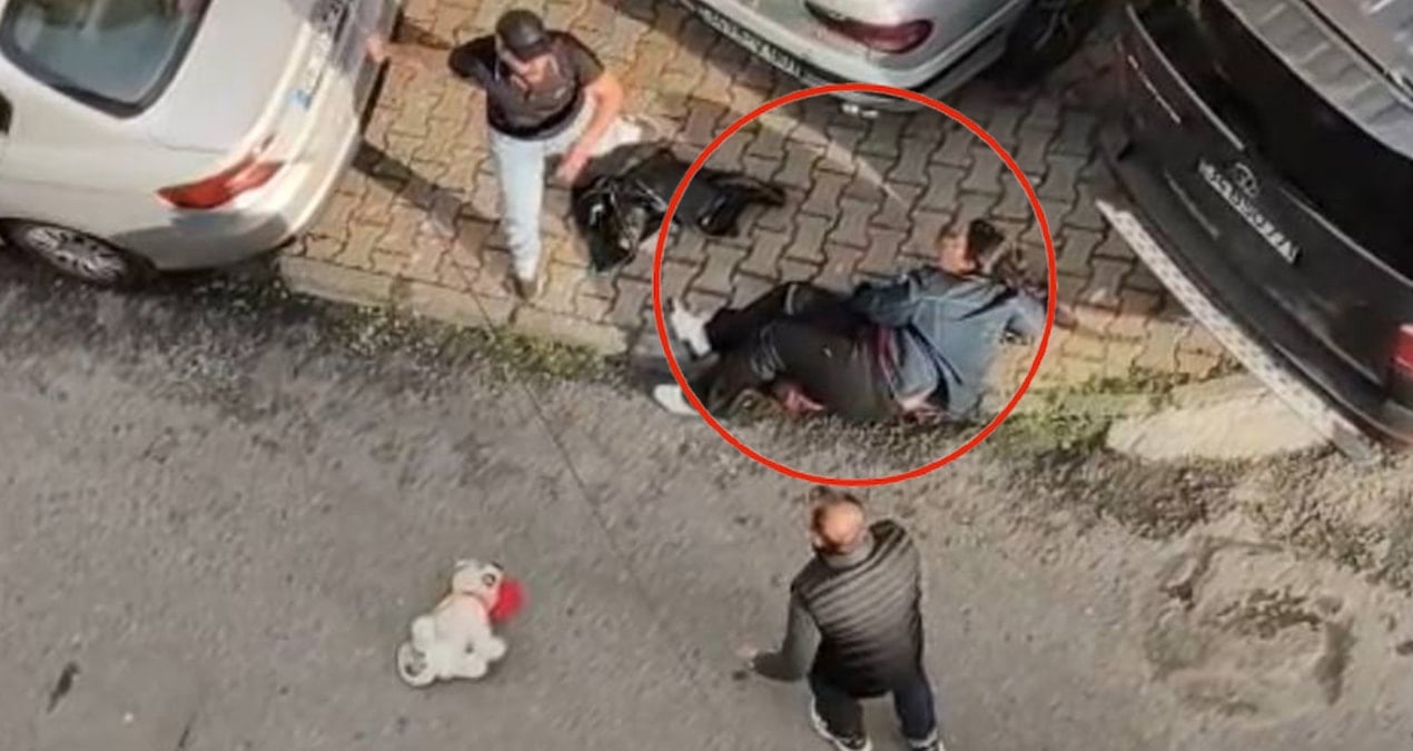Sokakta yaşanan dehşet anları ise cep telefonları ile kaydedildi. Görüntülerde, kocanın yaraladığı karısını tekmelediği, ardından bıçakla kendine zarar verdiği ve yanına kimseyi yaklaştırmadığı anlar yer aldı. Saldırgan kocanın polis ekipleri tarafından etkisiz hale getirildiği sırada çevredeki bazı vatandaşların tekme attığı bu sırada polisin ise engel olmaya çalıştığı anlar yer aldı.